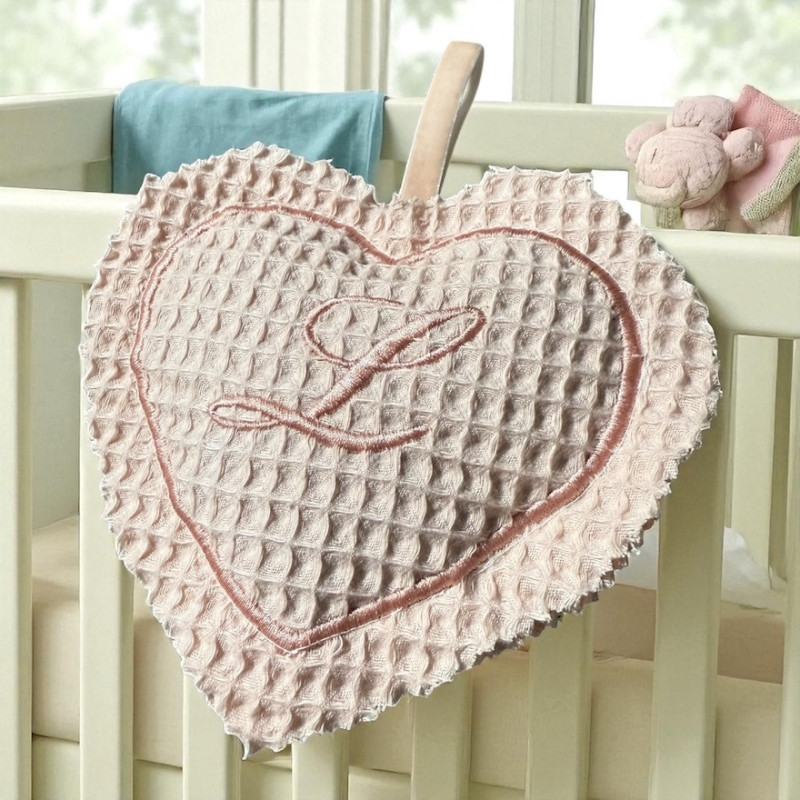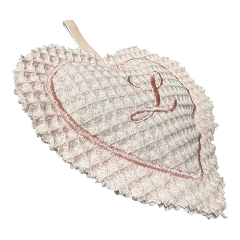 Coeur à suspendre brodé à vos initiales, senteur fleurs de lavande, confectionné à l'atelier dans du tissu nid d'abeille - Attache en satin. Pour parfumer vos armoires à linge ou décorer une chambre d'enfant.