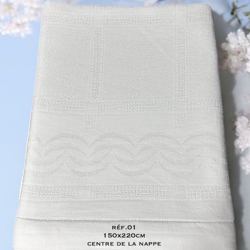 Les photos des nappes brodées sont à titre d'exemple, la nappe non brodée est celle proposée.