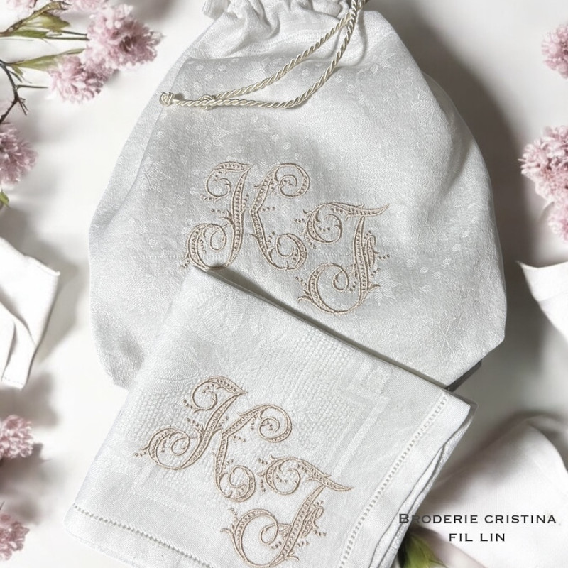 Un joli cadeau de mariage brodé personnalisé avec monogramme