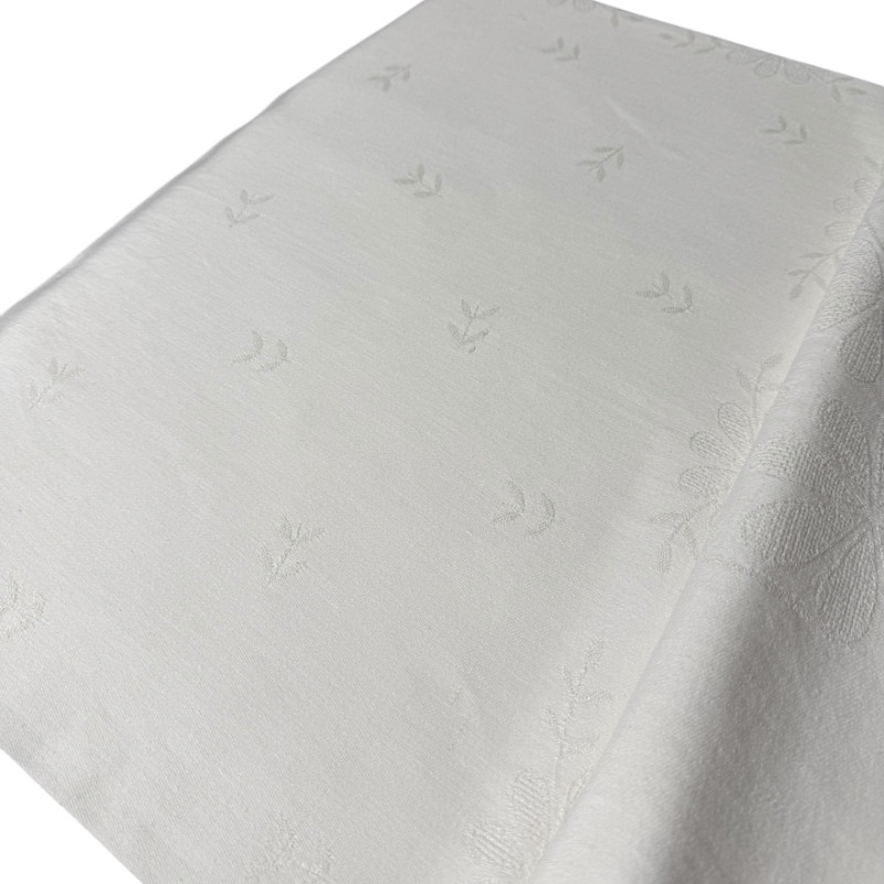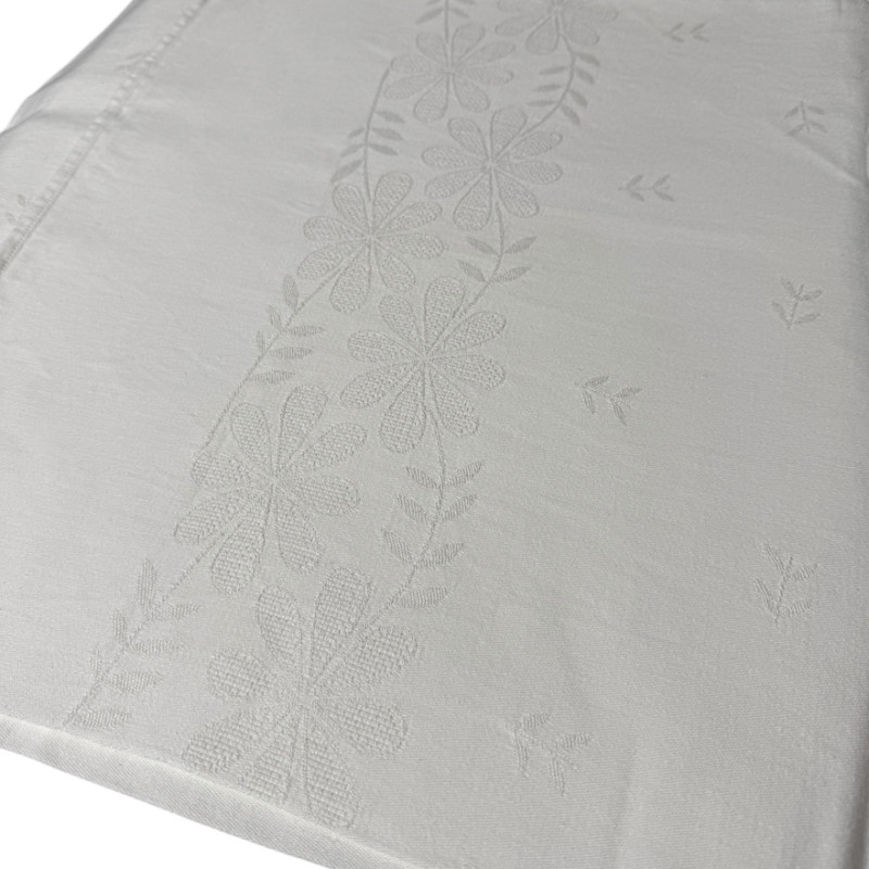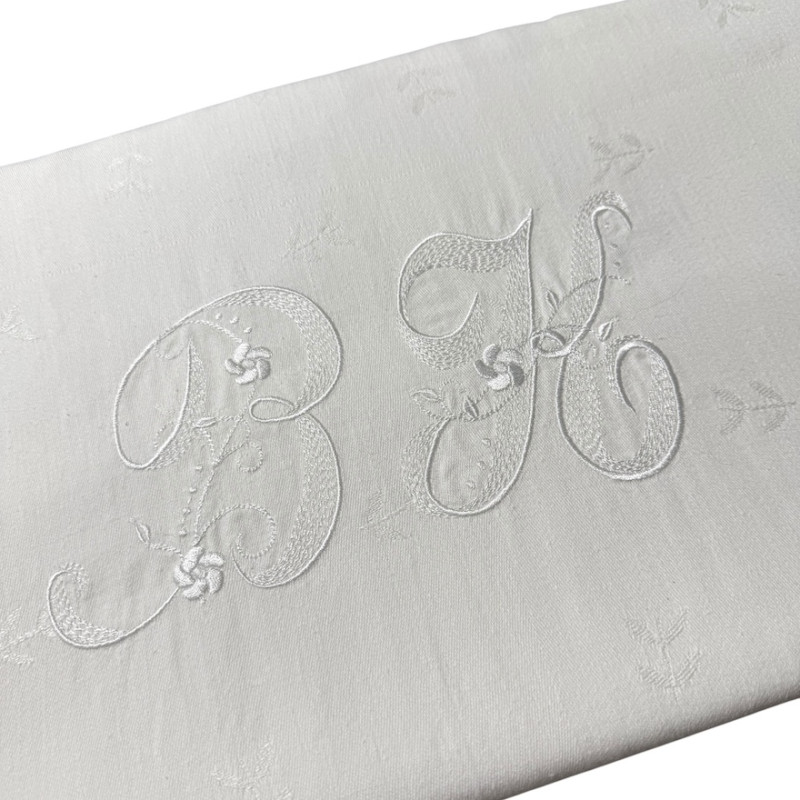 Belle nappe brodée au charme d'antan, tissu damassé lin - Monogramme BK brodé machine - Décor Floral - Pour une décoration de table chic et authentique