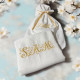 Un joli cadeau de mariage brodé personnalisé avec monogramme.