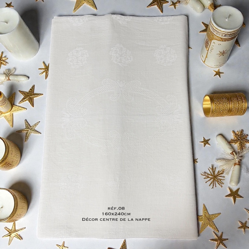 Les photos des nappes brodées sont à titre d'exemple, la nappe non brodée est celle proposée.