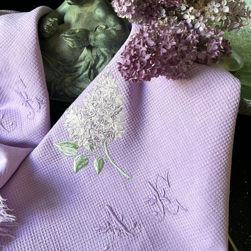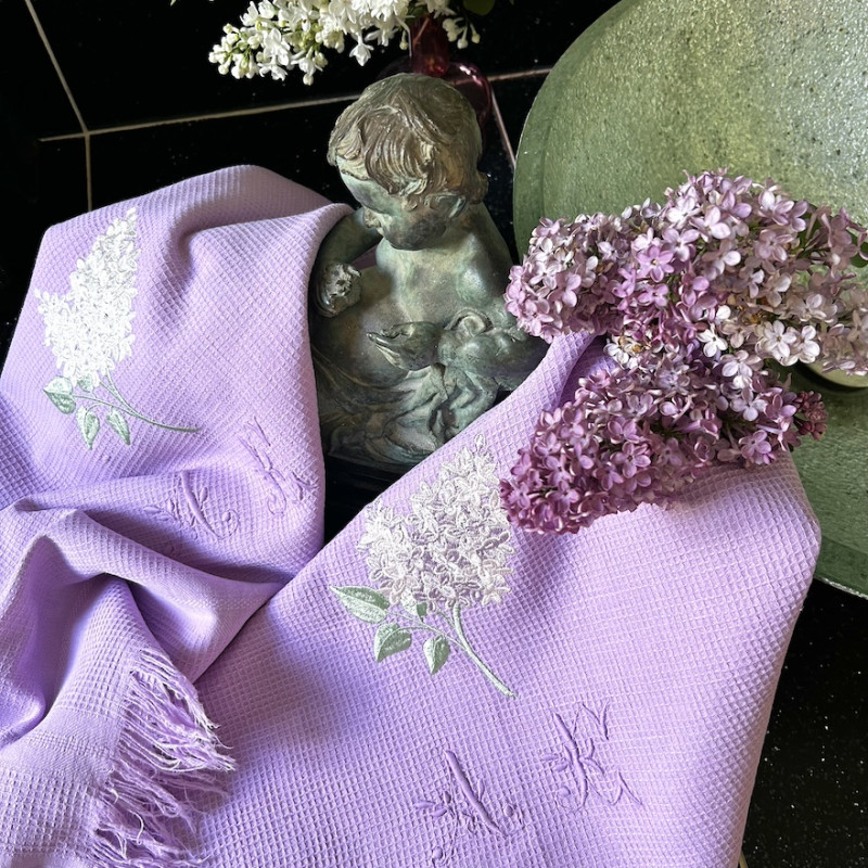Dimensions serviette environ 60x87cm - Broderie Lilas H12xL11cm